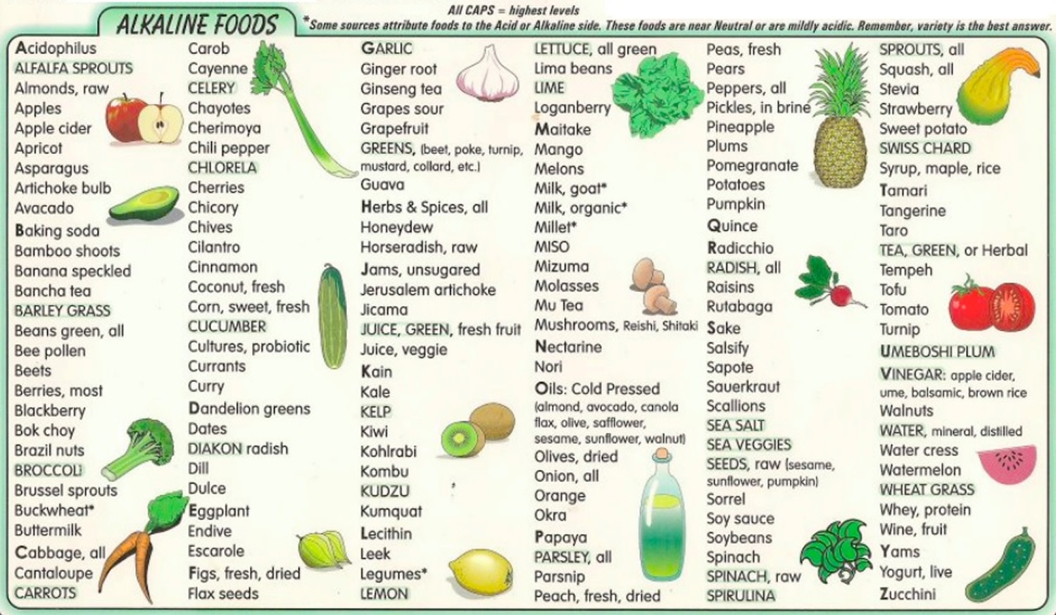 Vegetables are fruits conduct most within the alkaline food chart. When going thought the report on foods which alkaline attempt to consume those foods most in which higher around list of alkaline food. Vegetables that are green are found higher over the list of foods that are alkaline. Asparagus, broccoli, artichokes, cabbages, radish, peas, leeks and a lot more such alkaline vegetables can be found on this list. White tipped asparagus is acidic though and must not be employed much. Similarly the regarding foods tend to be alkaline any lot of fruits. Regardless of cranberries which are acidic all of the fruits in order to be entirely on the same list. Mangoes, papayas, lemons, grapefruits, melons are all alkaline in the.